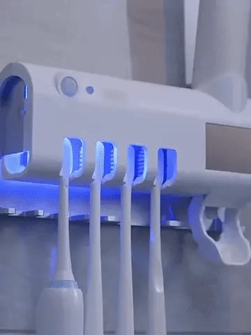 Dozator pentru pasta de dinti si suport pentru periute de dinti cu alimentare solara si sterilizare UV