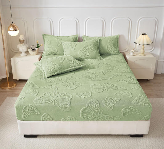 Husa Pentru Pat Dublu, Pucioasa, Model Cocolino Cu Fluturasi, Cu Elastic + 2 Fete De Perna
