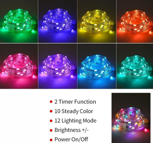 Ghirlanda Luminoasa Cu 100 LED-uri RGB, Control Prin Telecomanda si Aplicatie Smart, 10 m Lungime