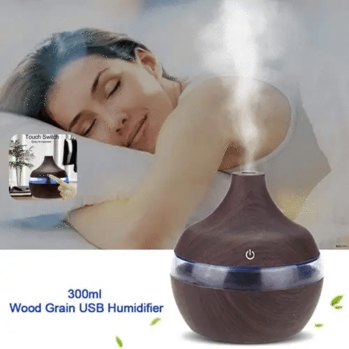 1+1 GRATIS: Difuzor Aromaterapie Cu Ultrasunete Si Umidificator Cu LED, 300 ml, Wenge + 12 uleiuri CADOU