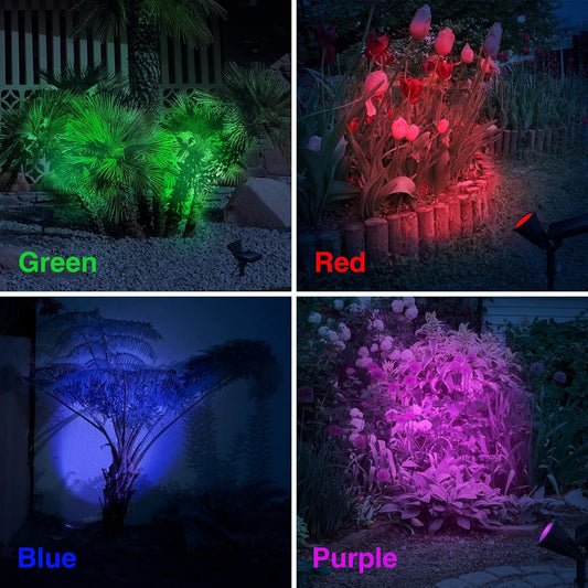 Proiector LED cu Incarcare Solara, Lumina Colorata, 7 Culori, Reglabil, Cu Suport de Fixare
