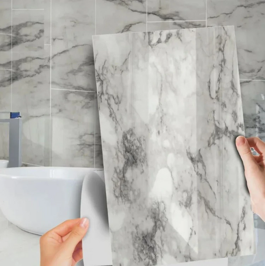 Set 10 x Tapet Autoadeziv, Rezistent la Umezeala, 60x30 cm, Model Marmura Alba