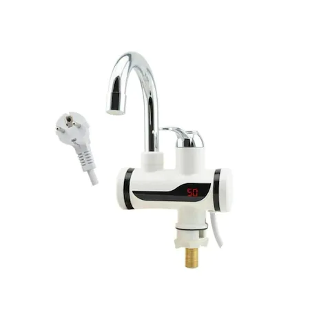 Robinet Electric Cu Dus, Pentru Incalzit Apa Instant, Cu Afisaj LED Al Temperaturii, Montare Pe Chiuveta, Putere 3000W, Alb