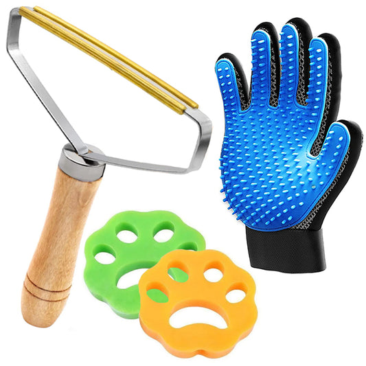 Set De 4 Accesorii Pentru Curatarea Scamelor Si Indepartarea Parului De Animale, Manusa, 2 Captatoare De Par Pentru Masina De Spalat, Perie Cu Zimti