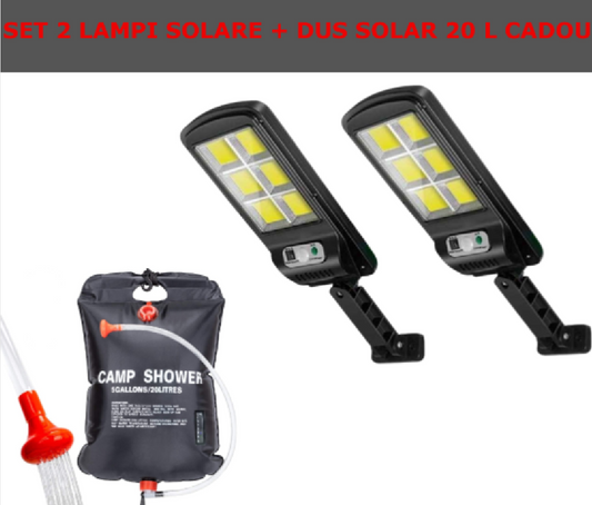Set De 2 Lampi Solare, Cu Senzor De Miscare SI Telecomanda, 300W + CADOU Dus Solar 20 Litri