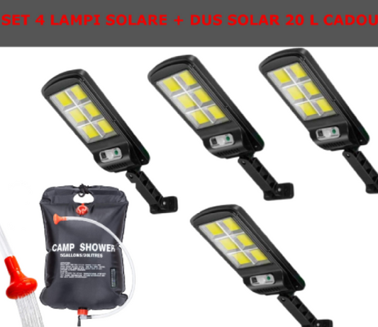 Set De 4 Lampi Solare, Cu Senzor De Miscare SI Telecomanda, 300W + CADOU Dus Solar 20 Litri
