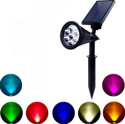 Spot LED cu Incarcare Solara, 7 LED-uri Puternice, Lumina Colorata, 7 Culori, Reglabil, Cu Suport de Fixare