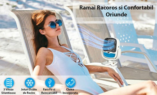 1+1 GRATIS: Mini Racitor Portabil Cu Apa Si Gheta Arctic Cool 360° Ideal Pentru Cort, Carucior Bebe