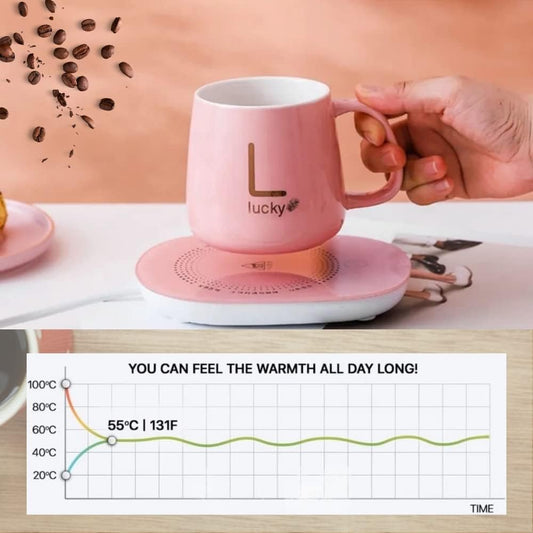 Cana Inteligenta de Cafea din Ceramica, cu Capac si Lingurita, 55 Grade, Controlul Temperaturii