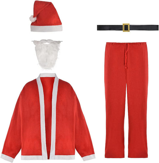 Costum Mos Craciun, Marime Universala, 5 Piese, Rosu/Alb