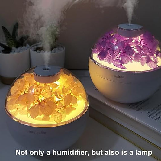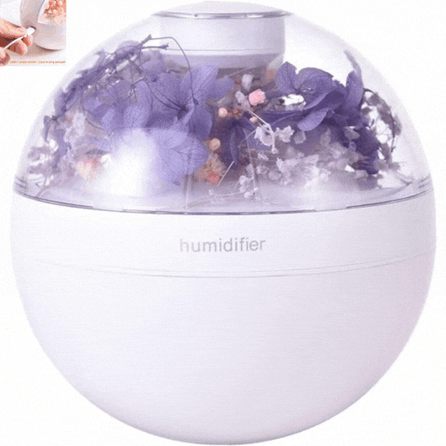 Difuzor De Aromaterapie cu Flori Artificiale, Iluminare Alb Cald, Alb/Mov + 12 Uleiuri Esentiale CADOU