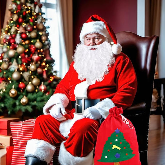 Costum Mos Craciun, Marime Universala, Catifea, 5 Piese, Rosu/Alb