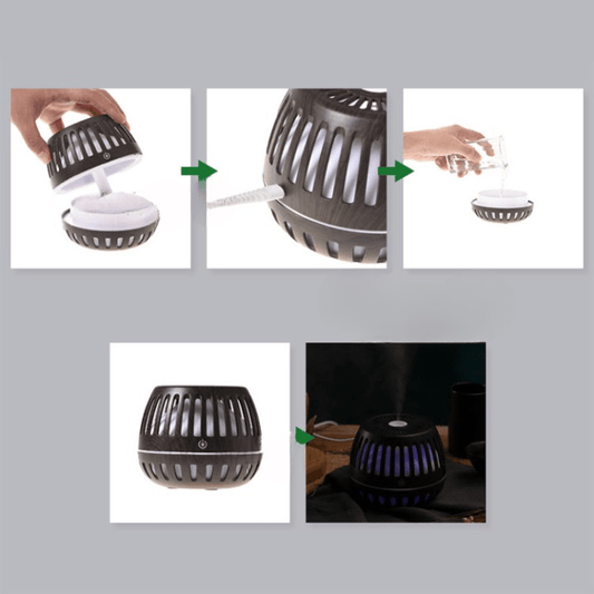 Difuzor Aromaterapie Ultrasonic - Efect Flacara, USB, Capacitate 180 ml, Negru