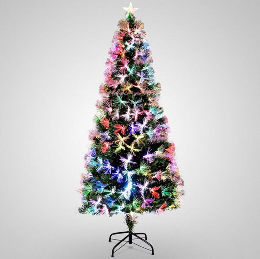 Brad Artificial De Craciun, Cu Fibra Optica si LED-uri Integrate, Multicolor, Aspect Nins + Steluta LED Inclusa