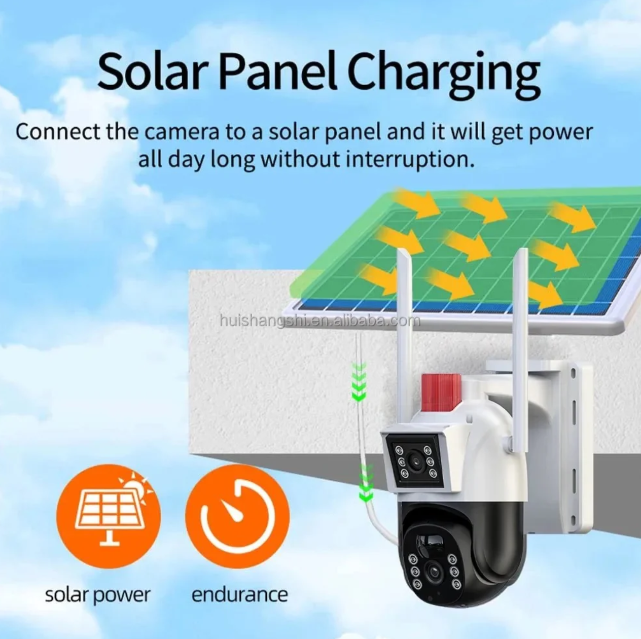 Incorporarea unui panou solar in designul camerei adauga un nivel suplimentar de eficienta si durabilitate.