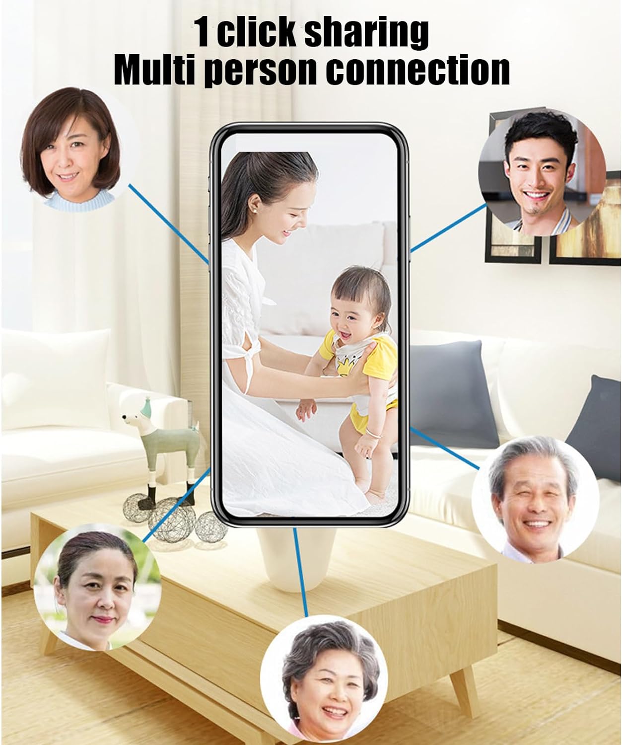 Echipata cu un microfon cu anulare a zgomotului, conversațiile în timp real sunt mai clare, iar securitatea casei este realizată printr-o cameră de rețea wireless (2,4 G Hz). Prin intermediul aplicațiilor inteligente, puteți discuta direct cu copiii, animalele de companie, părinții sau babysitterele dvs. oricând și oriunde.