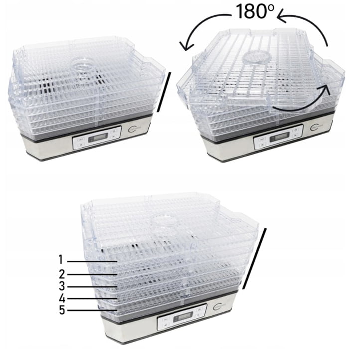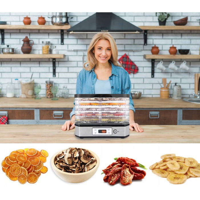 Uscarea produselor este o modalitate eficientă de conservare a acestora.Aerul cald, a cărui temperatură este controlată constant, circulă în interiorul deshidratorului între capac, tavele individuale și baza uscătorului cu motor.Vă puteți bucura de fructe, legume și ciuperci pe tot parcursul anului fără a adăuga conservanți.