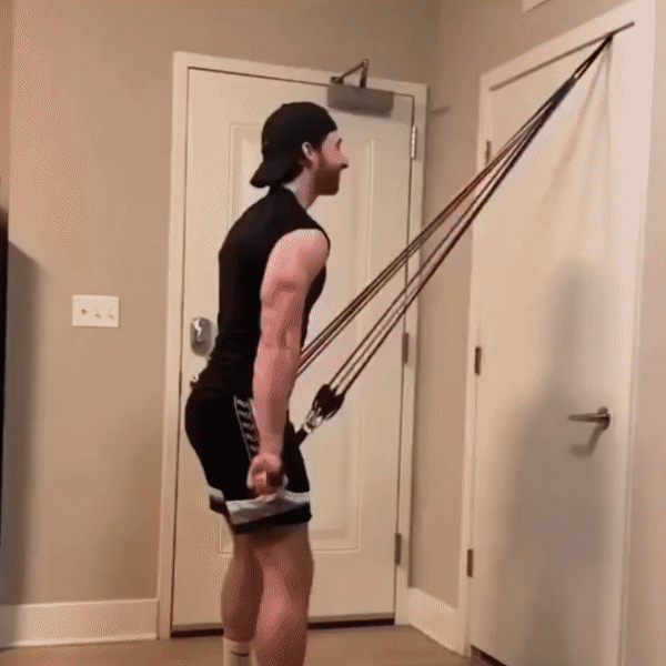 Setul de benzi de antrenament din 11 piese include curele de gleznă, mânere, și ancoră pentru ușă.